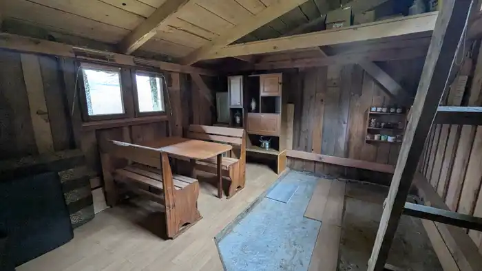 Na działce znajduje się drewniany domek rekreacyjny, który można przekształcić według własnych potrzeb – świetny potencjał.