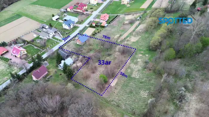 🌿 Działka o powierzchni 33 ar ma kształt litery L i daje duże możliwości zagospodarowania.