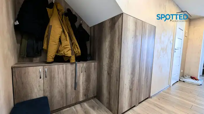 – 👟 funkcjonalny wiatrołap oraz korytarz z meblami w zabudowie