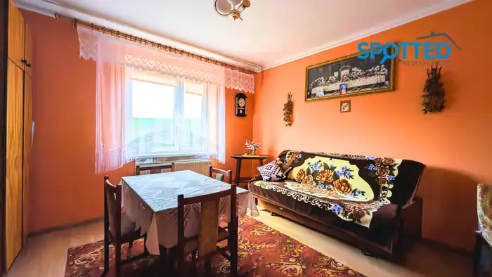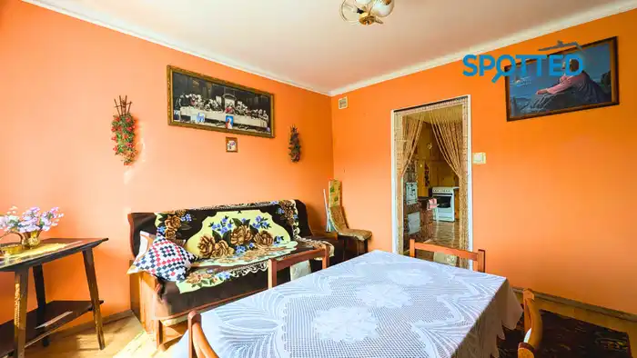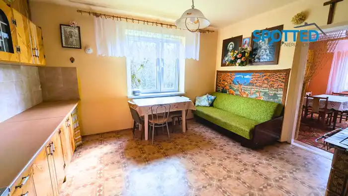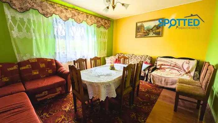 Dom murowany o powierzchni ok. 100 m² jest w bardzo dobrym stanie — możesz wprowadzić się od razu i urządzać wszystko po swojemu, bez presji remontu. W środku czuć przestrzeń i potencjał: duże pokoje, funkcjonalna kuchnia, wygodny układ, a do tego podpiwniczenie i ogromny strych do adaptacji.