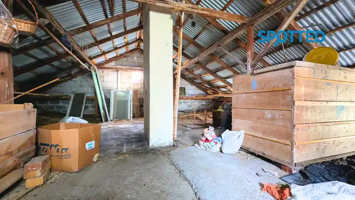 Na działce znajdziesz również solidny budynek gospodarczy z nowym dachem — idealny pod garaż, warsztat lub przestrzeń dla zwierząt.