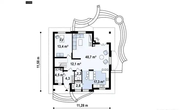 Do wykonania pozostaje jedynie montaż źródła ciepła – zaplanowano pompę ciepła lub eko-groszek, co daje przyszłemu właścicielowi pełną swobodę wyboru.
